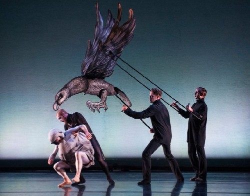 My only complaint about the piece is that with additional segments "The Deranged Cousins" and the "Disrespectful Summons" it flew by all too quickly. The delightful dance left us hungry for more of McIntyre’s inventions on Gorey. It ended when they wheeled out the penguin puppet representing Gorey’s signature "The Doubtful Guest" which was introduced in a 1957 illustrated book. We were delighted when its eyes glowed. The little creature was almost human.