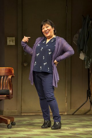 With delicious nuance the typically brilliant Hecht unfolds like an artichoke. On the cusp of spinsterhood she aspires to a relationship with her boss. Her way to his heart is through his stomach. She bakes muffins to share. We are amused to hear her fuss over ingredients. On this occasion, lemon. It is left on his desk. There is another for herself as well as for nasty colleague, Brenda Mishima (Ann Harada), who “everyone hates.”