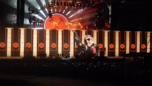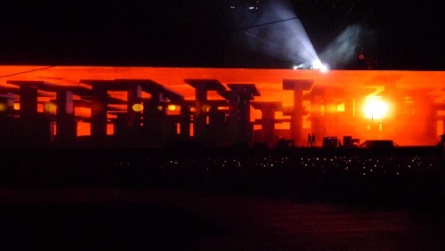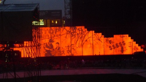 Beginning with a spectacular pyrotechnics and projections show that stretched across a stage and ersatz wall that were two football fields long, a spry 68 year old Roger Waters delivered the goods last night at Fenway Park.