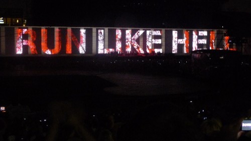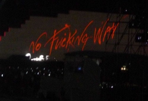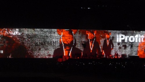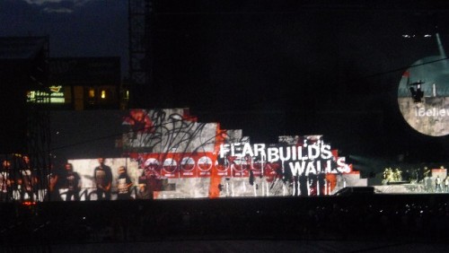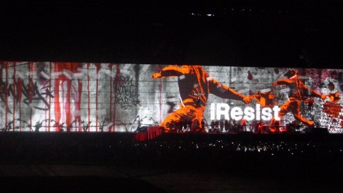 The concert was punctuated by virtual poetry and and a bit of profanity. At times, The Wall was a canvas for righteous graffiti expounding on resistance to corruption and war, authoritarianism, alienation and unfairness.