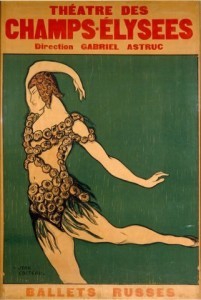 This ‘new ballet’ became the rage of Paris in 1909, when audiences went wild for the color, exoticism and barbarism, especially in the ballets designed by Bakst. As Bakst put it: