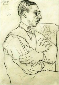 After World War I, Picasso made a number of important relationships with figures associated with Serge Diaghilev’s Ballets Russes. In the summer of 1918, Picasso married Olga Khokhlova, a ballerina with the troupe, for whom Picasso was designing the ballet, Parade. During the same period that Picasso collaborated with Diaghilev’s troup. He later collaborated with composer, Igor Stravinsky, on Pulcinella in 1920.