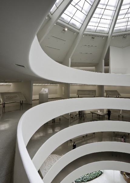 Just the name Guggenheim Museum evokes the image of the spiraling sculptural white form that houses the renown museum that is the only major structure created by Frank Lloyd Wright in New York City. It is a cultural and architectural landmark. Though now quite common, it was the first art museum to be designed as an art object itself. It is a symbolic and literal capstone to Wright's long roller coaster career. This year the Solomon R. Guggenheim Museum is celebrating the 50th Anniversary of this iconic structure.In 1960 a few months after it opened on October 21, 1959, I first saw the sleek, streamlined cylindrical white building when I was 12 and visiting NYC with my feisty grandmother. Though not knowledgeable about art and probably reactionary toward contemporary art, nevertheless she wanted to see what all the fuss was about. She seemed quite old at the time to me, but since she was born in 1897, she was roughly my current age. And certainly, I am not old. Anyway, at the time, as a kid who loved to draw and paint from a much less sophisticated Virginia, I was excited to see this new museum in New York. Newspapers, magazines and television were full of pictures, articles and stories about the new rather strange and unique looking museum by the famous old architect.