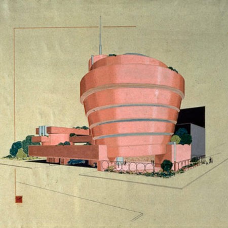Over the course of his 72 year career, Wright (1897-1959) developed a new sense of architecture in which form and function were inseparable. He died six months before the opening of The Solomon R. Guggenheim Museum. Frank Lloyd Wright is celebrated for the awe-inspiring beauty and tranquility of his designs often using nature and human structure to develop a physical and aesthetic harmony. He used geometric simplicity as a consistent visual grammar that was punctuated by material form and natural environmental integration.