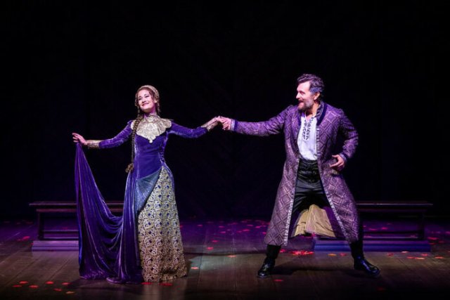 He originally directed Camelot in 2018 for Shakespeare Theatre Company in Washington, D.C. It has been trimmed to fit the dimensions and capabilities of Barrington Stage. Notably, he has overcome the limitations of this lesser work by Lerner and Loewe with at times energetic staging, stunning costumes, and brilliant casting. We cannot imagine a better Arthur than the wonderfully versatile and nuanced Ken Wulf Clark. He embodied the idealism and naiveté of Arthur and the play revolves around him.