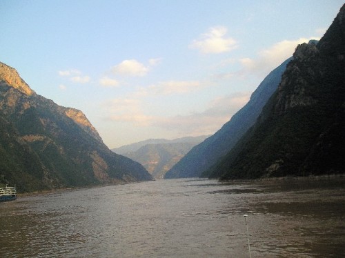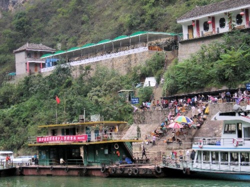 It was exciting to enter the first of the Three Gorges: the Gutang Gorge carved by the river through limestone highlands. The shortest of the three, it took us 20 minutes to go through its dramatic sheer cliffs. Throughout history people have been in awe of these cliff faces, carving stairways, placing tombs and inscribing poems on the mountainside.