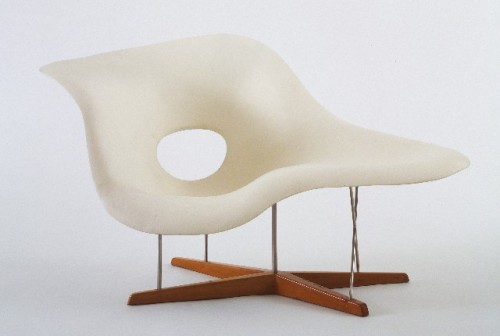 Like many design exhibits at MoMA in the selections in What Was Good Design?, some pieces are classic while others are unexpected. Charles and Ray Eames's Full Scale Model of Chaise Longue (La Chaise) was entered in MoMA's International Competition for Low-Cost Furniture (1948). Though it did not win a prize, it was highlighted by the judges for its looks and inventive moulded construction. La Chaise went into production in 1990, and has become an Eames icon. In contrast, O.J. Kuker's Plumb Bob is an elegant but relatively obscure piece of functional hardware.