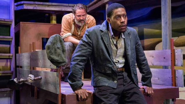 Tom Joad (Namir Smallwood), just released from prison for a murder he committed in self-defense, arrives in time to join his family on the long trip. His parents (strong performances from Paul D’Addario and Kona N. Burks) are overjoyed to see him because they were afraid they might not be reunited once they left home. Tom is on parole and restricted from leaving the state but decides the trip is worth the risk. Other family members are Al (Lane Flores), a wild but mechanically talented young man; Rose of Sharon (Emily Marso), who is pregnant and married to Connie Rivers (Tim Martin); Uncle John (Jay Worthington), blind and unwilling to leave his house. Grampa and Granma Joad (Art Fox and Alexandra Main) are going along, as are three other Joad offspring.