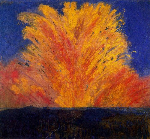 The first gallery space exhibits his earlier work from the time he was showing at the Salon after studying at the Royal Academy in Brussels. These paintings and drawings are realistic scenes in a very gloomy and subdued manner. Then suddenly, color explodes onto canvas like a Fourth of July fire works spectacular. Adam and Eve Expelled from Paradise (1887) and Fireworks (1887) are wonderful examples of his visionary rendition of light and expressive handling of paint. As one moves through the show it becomes increasingly evident that Ensor was an important precursor to both Expressionism and Surrealism.