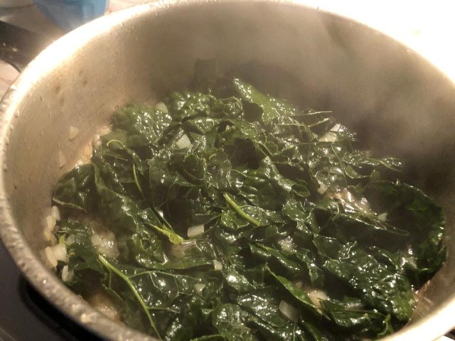 As a side dish we sautéed Lacinato kale over caramelized Vidalia onion.
