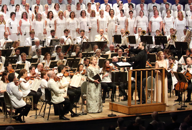 Bearded and wearing a flowing loose, black silk shirt, with the orchestra in formal white, Andris Nelson, was fluid and expressive leading the massive ensemble of musicians and chorus seemingly filling every inch of the vast stage.