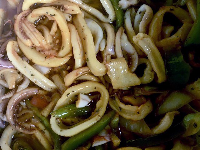 I’m guessing that most people would call this recipe of mine, calamari salad. The proper terminology is when squid is fried, it is called calamari.