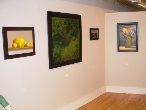 The gallery for Storefront Artists at 124 Fenn Street occupies space in a building which has been under development as an artist/ loft building but has not made the progress which was anticipated. Peter Dudek, the current head of the group, was preparing for an opening when we chatted in the large and funky space. There is a jury rigged lighting system which is cheap but adequate. Dudek described how initially artists thought they could grab up cheap buildings but found that it takes a lot of resources, energy and entrepreneurship to develop a space and they concluded that they really didn't want to be landlords.