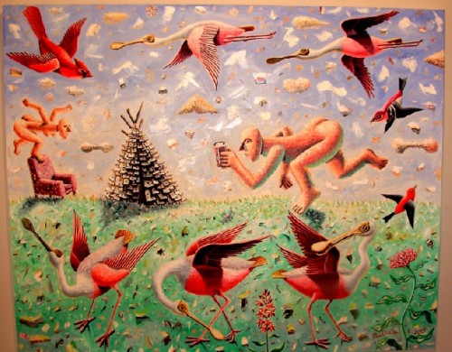 Arriving early, however, offered the opportunity to appreciate the wonderfully generous new space and discuss with her ambition plans to operate two galleries this summer. Arriving at 443 North Street gave an odd sense of déjà vu all over again. Last summer it was the address of the avant-garde Gallery Boreas run by Scott Laugenour who is now operating out of the garage of his home in Lenox. Actually Scott programmed the garage last summer mostly for video work, a particular passion and specialty. But last summer the space was ultra funky. Scott has a flair for making what were formerly cheap rentals into functional galleries with the minimum of investment. But as Pittsfield becomes ever more developed the once rock bottom prices for real estate just are no longer available.