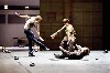 Better fared the stunning interpretation of “Romeo and Juliet” by the Nature Theater of Oklahoma. It was founded by Kelly Copper and Pavol Liska, Their trademark approach, interviewing regular people about issues, using the results verbatim and putting them into an artistic packaging has made them famous. It produced, as to the subject of Shakespeare’s Romeo and Juliet, hilariously funny results and received a more welcoming applause than “Partitia 2.” Two days later, there was again a tepid response to the first of six performances of the company’s “Life and Times” series. Five of them are reenactments of extensive interviews conducted with an average middle-class woman on her life. The last one will be a work in progress based on the interrelations with the Berlin public.