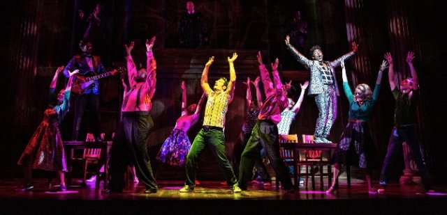 A new musical Rock and Roll Man: The Alan Freed Story is being given a lavish world premiere production by Berkshire Theatre Group. The telling of the birth of rock and roll, with all of that paradigmatic music, would seem to be a sure thing. Based on what we saw at the Colonial Theatre in Pittsfield the production has energy, commitment and potential but requires theatrical triage. It needs revision and tightening to transfer from Berkshires to Broadway.