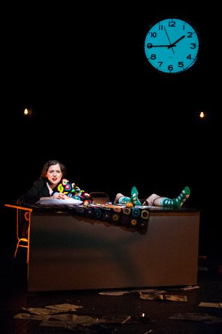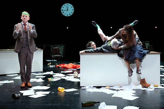 The set is a long conference table behind which the actors sit. We do not at first see that Stephen Daedelus (Christopher-Rashee Stevenson) is wearing shorts or later, exactly what sex acts Molly and her gigolo are performing.