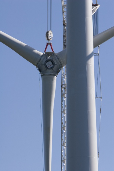 To get to the summit visitors rode the chair-lift. The ride itself was a treat as we approached the top of the mountain, We were greeted with the Stars & Stripes waving magnificently in the Berkshire wind. A steep, half mile walk led to the area where the 'Zephyr' wind turbine tower seemed to be patiently awaiting completion. The audience watched the nearly 12 tons of blades lifted and aligned perfectly with the nacelle where three crew members, 260 feet above ground, waited to secure the blades.
