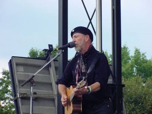 Chris Smither up next, accompanied by his rarely appearing side band, The Motivators, tore the house down, if you can say that about an outdoor concert. The fence in front of the stage was bowed with people pushed up against it to get a closer look and to take pictures. His performance engendered the loudest and most sustained response of any I heard the whole weekend long. Featured of course was the title tune from Chris’s new CD, Hundred Dollar Valentine which we recently reviewed here. Few performers were permitted an encore, but Chris was one of them and only the promise of living legend, Richard Thompson, to follow quieted the audience’s call for more.