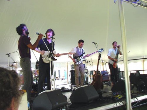 At the end of his set we trudged off to the Yonder stage to catch Darlingside. This local group from Amherst had released an EP almost two years ago that intrigued me with its synthesis of a number of world music themes and pop/rock style. Sunday’s performance showed me they had become much tighter and coherent, though they designed their set to appeal to a broader and less attentive audience than that on their EP. Their choice was validated by a steady stream of arrivals drawn mostly from the main stage audience where Elizabeth Cook was performing. Fun, high energy, interesting lyrics and musical blends, Darlingside is a band to keep your eye on.