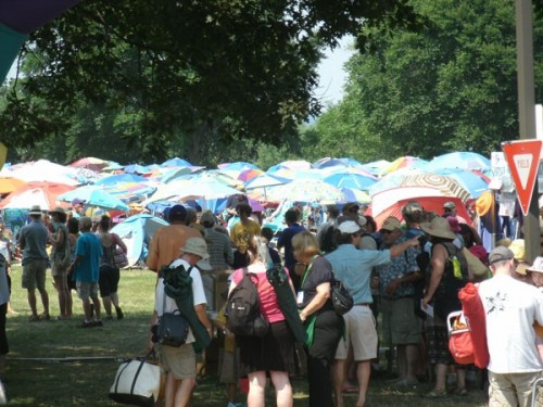 Arriving at the Festival’s parking lot and shuttle service, I was immediately impressed by how efficiently the buses were loading up and moving out. My bus had a guitarist sitting up front serenading us all for the 10 minute ride to the festival entrance. My fellow riders were burdened to the extreme with all manner of picnic accoutrements, coolers, umbrellas, chairs, canopies, all organized in such a way that I realized they must be seasoned veterans of such events.