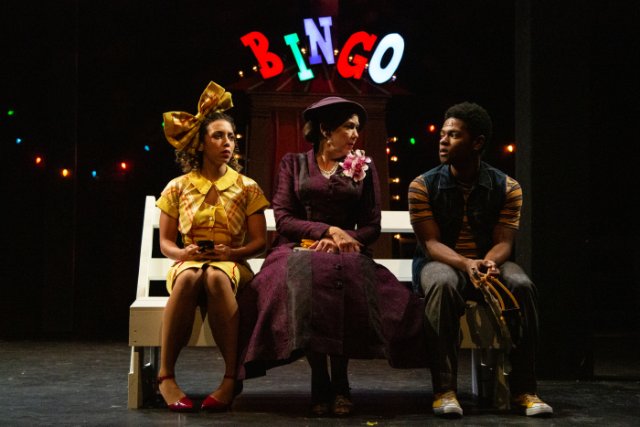 Cast: Lauren Baez (Muse, Conveneer, Chair Pusher, Usher Bailey) Lynnette R. Freeman (Homer, Fortune Teller, Ivy) Marcus Gladney Jr. (Henry) Harriet Harris (Mrs. Antrobus) Danny Johnson (Mr. Antrobus) Ralph Petillo (Moses, Bingo Caller, Mr. Tremayne) Claire Saunders (Gladys) Marjie Shrimpton (Muse, Telegraph Boy, Hester) Matt Sullivan (Stage Manager, Broadcast Official) Ariana Venturi (Sabina) Kennedy Haygood, Isabel Jordan, Hanna Koczela, Alex O’Shea, Tony Reimonenq, Julian Tushabe (Acting Interns) Scenic Designer: Bill Clarke; Costume Designer: Hunter Kazorowski; Lighting Designer: Daniel J. Kotlowitz; Resident Composer, Sound Designer: Scott Killian; Wig, Hair and Makeup Designer: J. Jared Janas; Movement Director: Isadora Wolfe