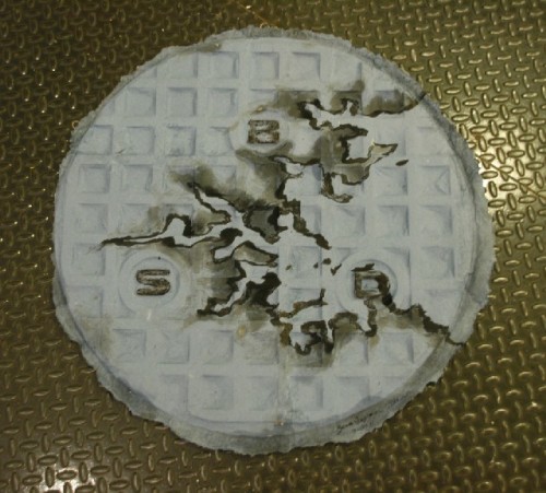 Because my son Chris Allen and his wife Rebecca live in Boston I was able to stay with them and do it here without the expense of accommodations. The grant helped with materials and equipment and travel. Boston is a sister city to Taipei and I had already done some work in Taiwan during my Fulbright grant in 2004 using the Taipei city manhole covers and street signs. Some of these pieces are also exhibited in the Boston exhibition at Distillery Gallery. It is interesting to compare and contrast the Boston and Taipei pieces.