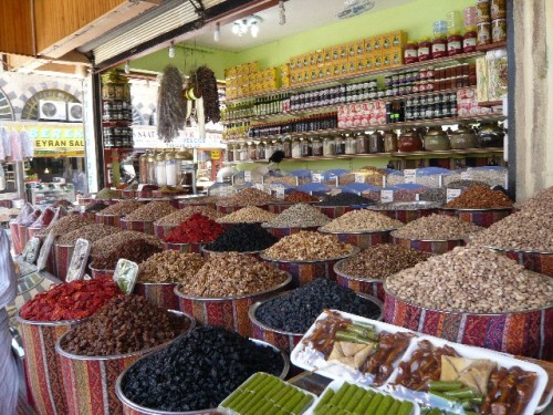 Our first stop was at Cagdas for lunch. Catering both to locals and tourists, the restaurant is famous for its lahmacun and for its variety of kebabs and sweets. New to me was the "carrot baklava", named after the vegetable because of its long shape. The delicious dessert was a reminder that, traveling in Turkey one leaves one's diet at home. Then we strolled through the Long Market packed with big sacs of herbs and spices, dried fruits and nuts. The market has a maze of alleys designated for copperware, woodcraft, slippers, textiles etc.