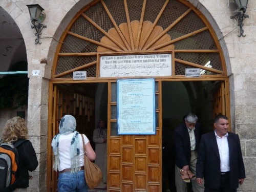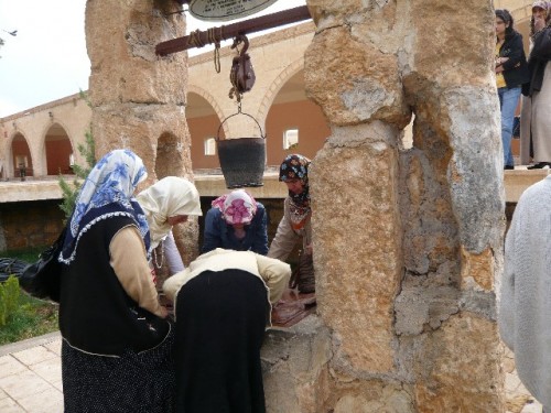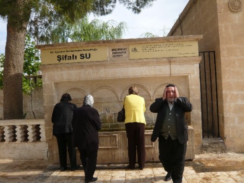 On our way out of town the following morning we stopped at Prophet Eyup's holy fountain, erected near a well, where the prophet is said to have miraculously recovered from leprosy by drinking the water. The faithful lined up to peer at the well and touch their foreheads to it, as well as to drink from the fountain.