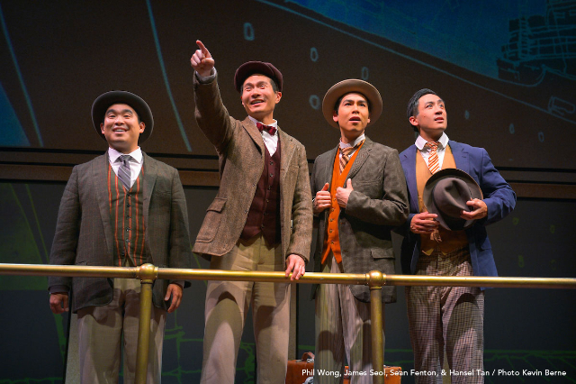 Kahng brings the heartbeats of these immigrants to life with a compelling narrative infused by his own bright and melodic musical score. The manga look is captured by Andrew Boyce's stunning scenery dominated by large swatches of solid colors and comic details, largely delivered by both painted and projected moving panels. Similarly, Noah Marin's costumes adeptly reflect the period and culture, with men in muted coats and ties and women with striking colors and bold patterns. Add brisk direction and complex coordination of elements by Leslie Martinson, and this heart-rending world premiere musical dramedy earns its place on the major league stage.