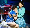 We are never quite sure why Mom (Jill Abramovitz) ended up in Pittsburgh. Or failed to flee back to Mecca after the first of several divorces. A definite no no punctuated in song by “D.I.V.O.R.C.E.” Every time she divorces the kid is served a treat, a bowl of ice cream, and a trick “Daddy doesn’t love us any more.”