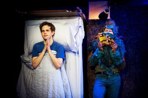 While we witness the trajectory of the boy becoming a man that is shadowed by an alter ego/ narrator, and ersatz one man Greek chorus, who fills us in with asides. Me, yes that’s what he is known as, how original, is played by Stanley Bahorek. He appears to be a better actor and singer than the script suggests.