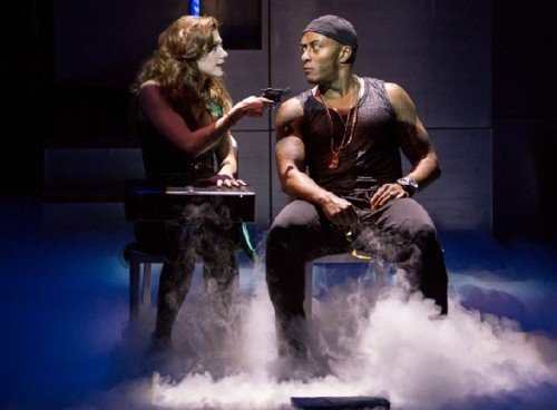 The title of the play also recalls Jay McInerney’s Big Lights Big City about the dark side of New York. And surely we are on the dark side of Chicago at the Lookingglass. But not without continuous eruptions of humor.