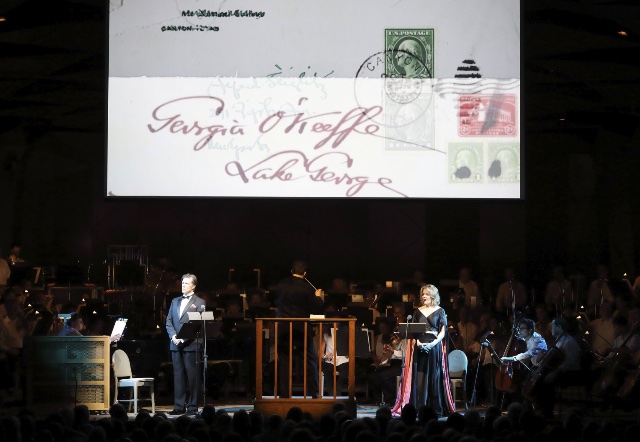 The Brightness of Light by Kevin Puts had its world premiere at The Shed at Tanglewood. Rod Gilfry, baritone, and Puts' collaborator Renee Fleming, sang the baritone and soprano roles of Alfred Stieglitz and Georgia O'Keefe, who were married for twenty-two years. Often living and working in different parts of America, they corresponded. Puts scoured the correspondence to develop an arc for his orchestral song cycle.