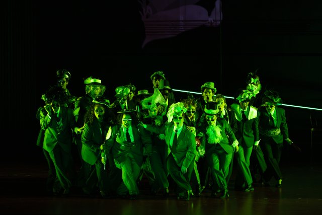 Visual elements on stage are a bit staid until the brothel scenes when they explode. The score makes considerable use of choruses, and the choristers in effect double as a corps de danse who contribute to the overall appearance. Dressed in tawdry black and white, the carnal look and undulating movement is reminiscent of what you might see in Cabaret or Three Penny Opera.