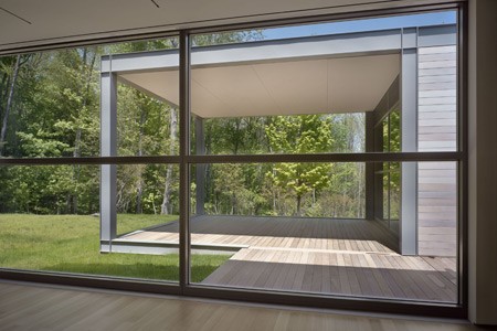 The geometrically appealing, two-story, wood and glass building provides vistas of the countryside in all directions. This is a hallmark of Ando's architecture. It has 2500 ft of beautiful, bright, contemplative gallery space, a 1000 ft studio art/meeting room, and 1200 ft designated for the Williamstown Art Conservation Center. The spaces feel light and airy yet literally grounded to the landscape. Tadao Ando's great ability to seamlessly weave architecture into a natural setting led the Clark to select him. Stone Hill Center reflects the quality of the choice of Ando and the quality of this architect's beautiful, but functional work.