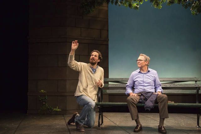 Directed by Eric Hill in the Unicorn Theatre, Edward Albee’s powerful but vexing and perplexing two act play, At Home at the Zoo (Zoo Story), is being given a riveting production by Berkshire Theatre Group.