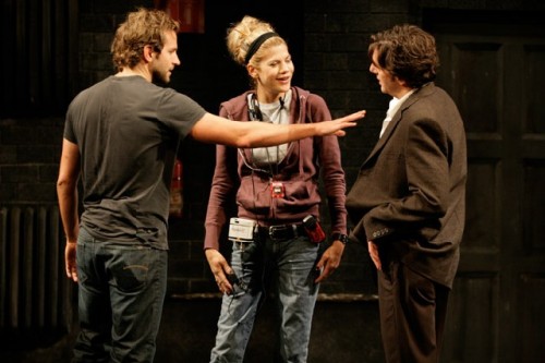In fact, Bradley Cooper, the semi-famous actor in the Kafka play, the clerk, who arrests the police investigator, is also in real life a film and TV actor. We remember him from a role in TV's "Alias." He has also been in the film "Wedding Crashers" and suits this current role well. One could feel and taste his frustration, when he almost gets the big role in his next film, which would have catapulted him into the big league of Movie Stardom - but let's not give away the ending.