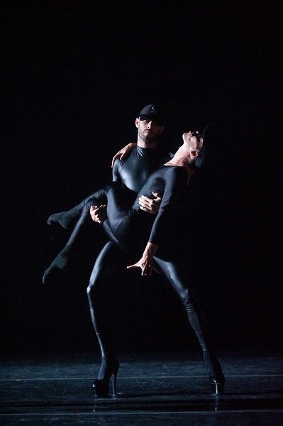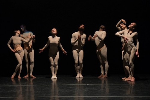 Having set the mood and tempo with an astonishing solo the rest of the company appears in flesh toned, body revealing unitards with kinky plastic g-strings, panties and girdles. While generally disembodied and dehumanized there is a prevailing eroticism to the dance than ebbs and flows in sensual waves.