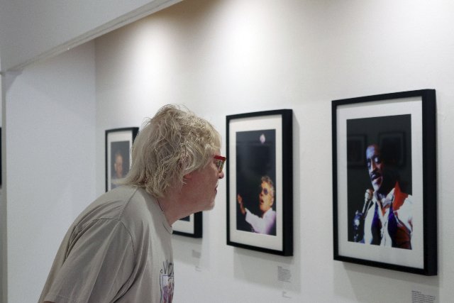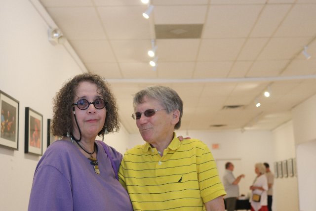 My neighbor, and artist friend, a rock 'n' roller, Rick Harlow, came early to beat the crowd and really see the work. There were many classic rock images he connected with. Another early guest was Mary Weidbordt a craft and jewelry maker.