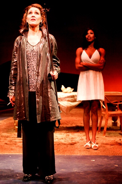 The Jewish thing, and Jack's denial of his heritage, is further emphasized in the casting, sets and costumes of this confusing mish mash play. Adam Heller's Wood, Jack's Dad, is a self absorbed, tasteless, materialistic, runty, nebbishy Jew straight out of central casting. He is every bit as much a racial stereotype as Kaitilin Hopkins', up tight, controlling, ball busting, WASP Mom, Liberty. To push the imagery over the edge David C. Woolard has dressed Wood in a gold lame, leisure suit with matching gold running shoes. His house in Rio is also solid gold in a set by G. W. Mercier. Jews it seems wallow in gold. Duh. This is funny?