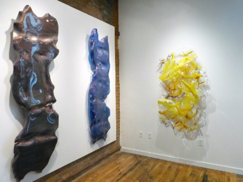 I’ve worked with Golden Artists Colors from the inception. They are a leader in developing new products from gels to iridescent paints. Their company is over four hours away from here and they came to the opening reception. It was touching to me that Mark Golden and his wife Barbara came. Also an engineer from SABIC-Innovative Plastics (the former GE in Pittsfield) also visited.