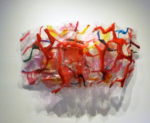 I was buying plastics at a company outside Boston and one of the associates recommended it. I liked it because I could bend it more easily in order to attach it to the back of the canvas. Then I realized it would be interesting to do some bends in the middle.