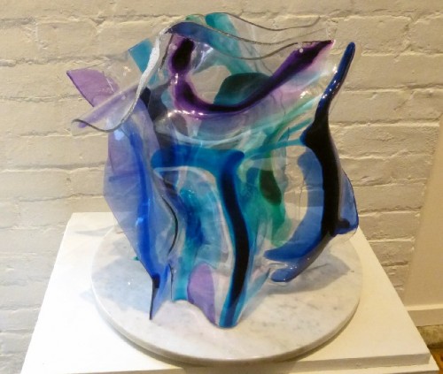 MM I’m just exploring it now. The reflections, transparency, layering. I’m working with large single pieces that are painted on both sides. They are fun. And I’m working on multi layered ones such as that blue one there. I’m doing both simultaneously. These table pieces might eventually grow into much larger floor pieces. I want to work more with lights and shadows.