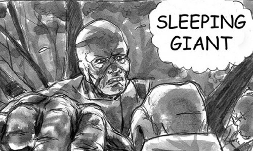 Sleeping Giant is an allegorical warning about the myth of America. From small-town values to adventures in empire, the piece revolves around twin brothers: the Superhero and the Sleeping Giant. One goes off to fight an unpopular war only to come back maimed and disillusioned, while the other becomes rooted in the ground to become a powerful underground force.