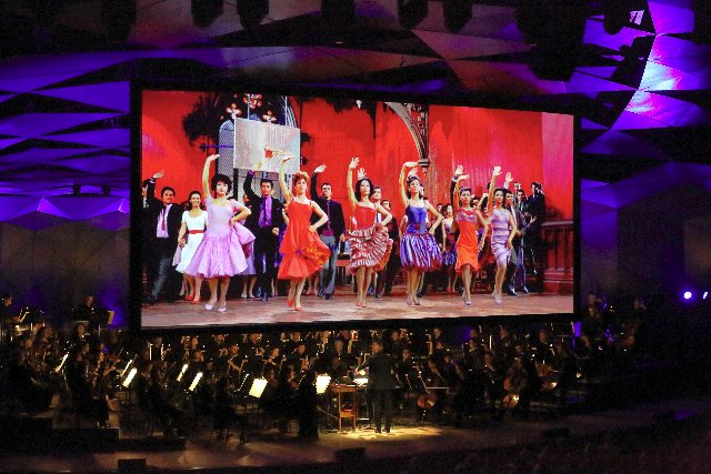 David Newman led the Boston symphony Orchestra (BSO) to a triumphant musical presentation of Leonard Bernstein’s electrifying score of the 1961 remastered, high definition West Side Story. It was shown for the first time on Tanglewood's new monster size screens.