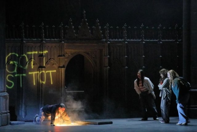 This is an emotionally and visually arresting production. Rather than focusing on the literal cost of gold, Kratzer redirects our attention to a deeper theme: the meaning of faith—for mortals and immortals alike. Alberich clings with primal certainty to the power of gold. Wotan, by contrast, is bound to a form of faith shaped by immortality—repetitive, rule-bound, and edging toward existential boredom.