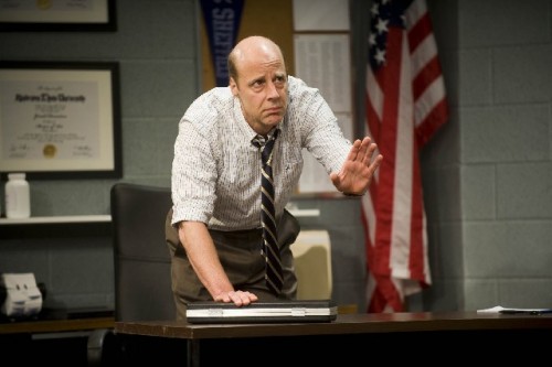 The one act play The North Pool is a dense, intensely woven, ever escalating conflict between the bald, homely, bean counting, non descript, high school Vice Principle, Dr. Danielson, Remi Sandri, and an arrogant, aloof, privileged, Middle Eastern, transfer student, Khadim, played by Babak Tafti.