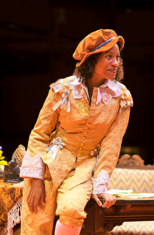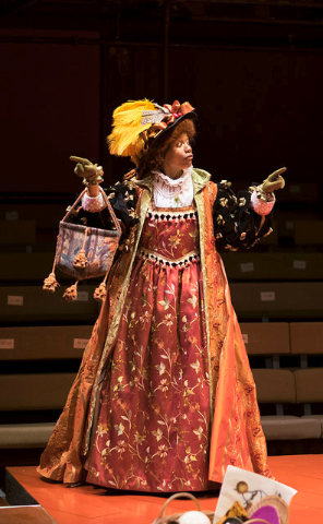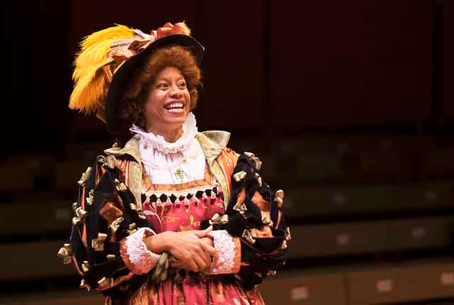 Another character in the Kelly play is the historical figure Nell Gywnne (Nehassaiu de Gannes) who was one of the first women to appear on the British stage. She performed both male and female roles.