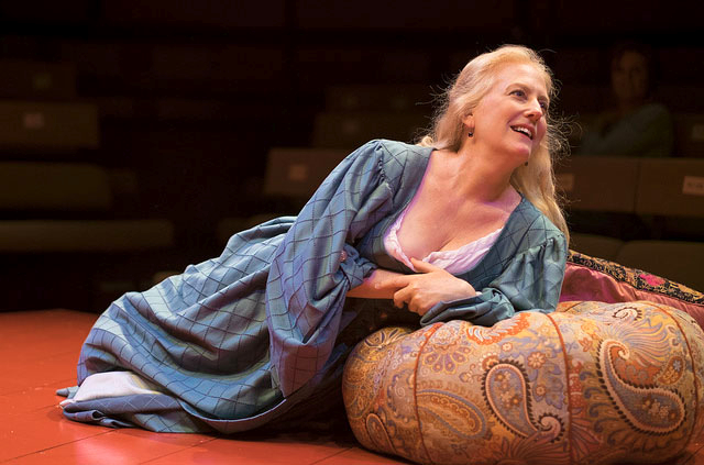 Out of character as Aphra Behn (1640-1689) the formidable company actress, Tod Randolph, addresses the audience directly.